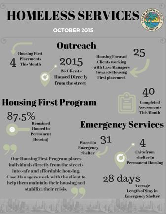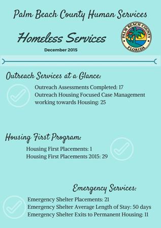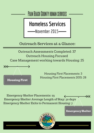 To assist individuals who are homeless in Palm Beach County through outreach, assessment, and housing. Services are prioritized to the most vulnerable homeless persons. Palm Beach County is transitioning services towards a Housing First philosophy in its practices.